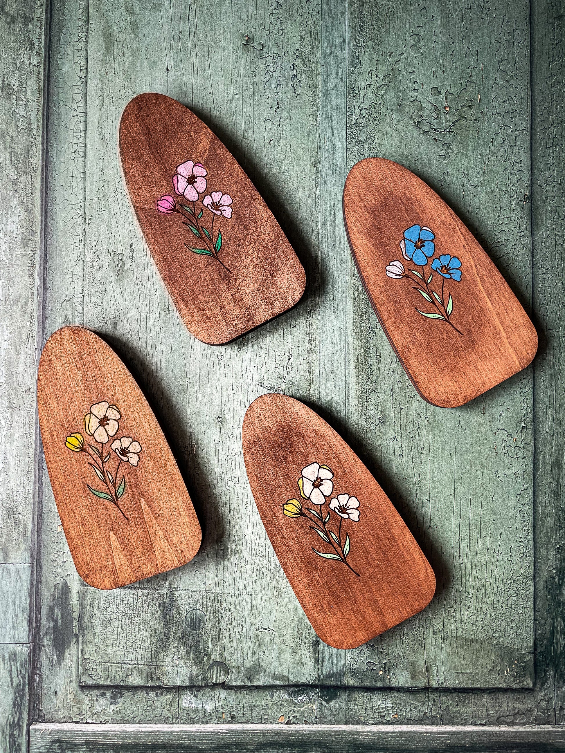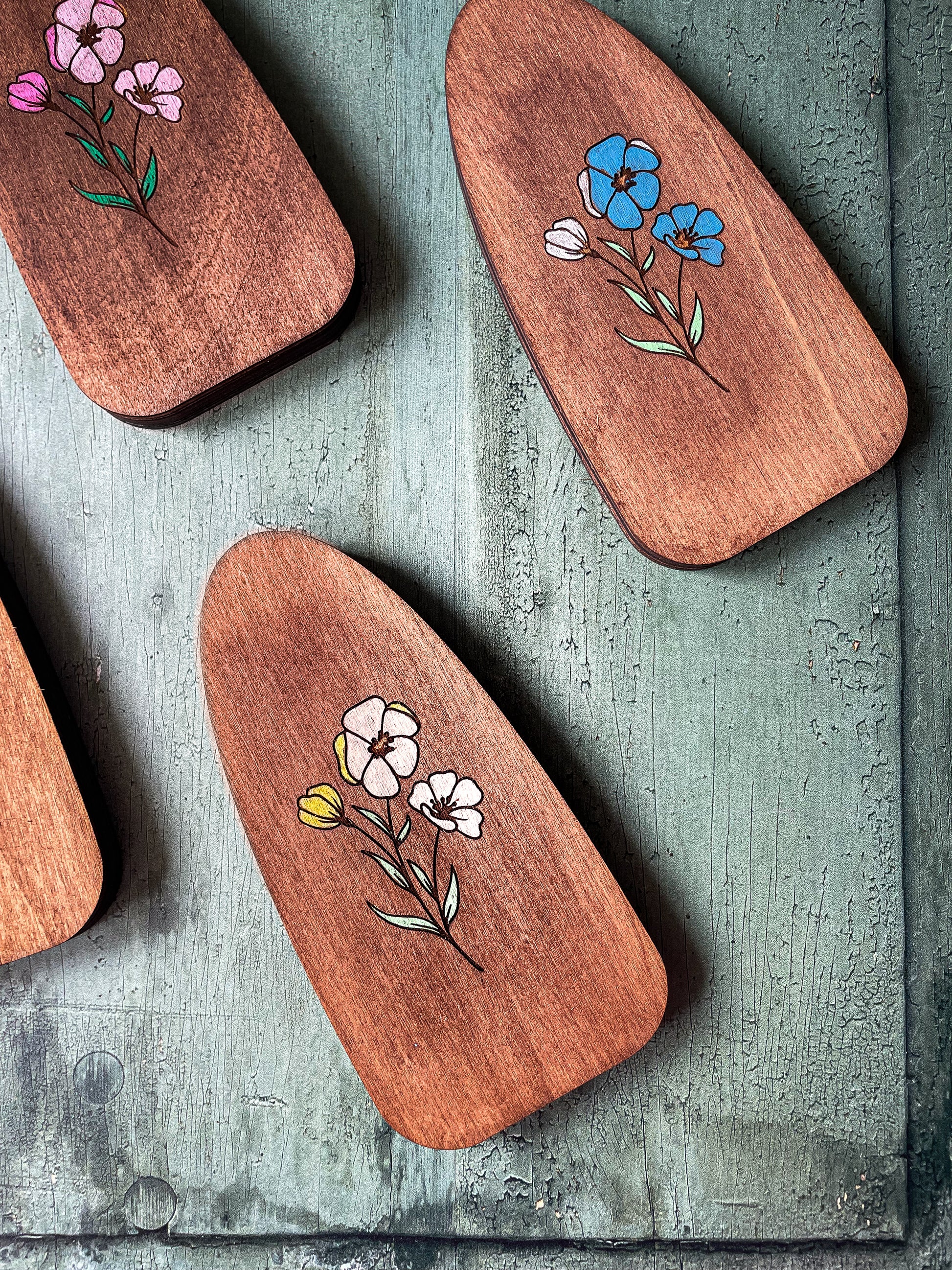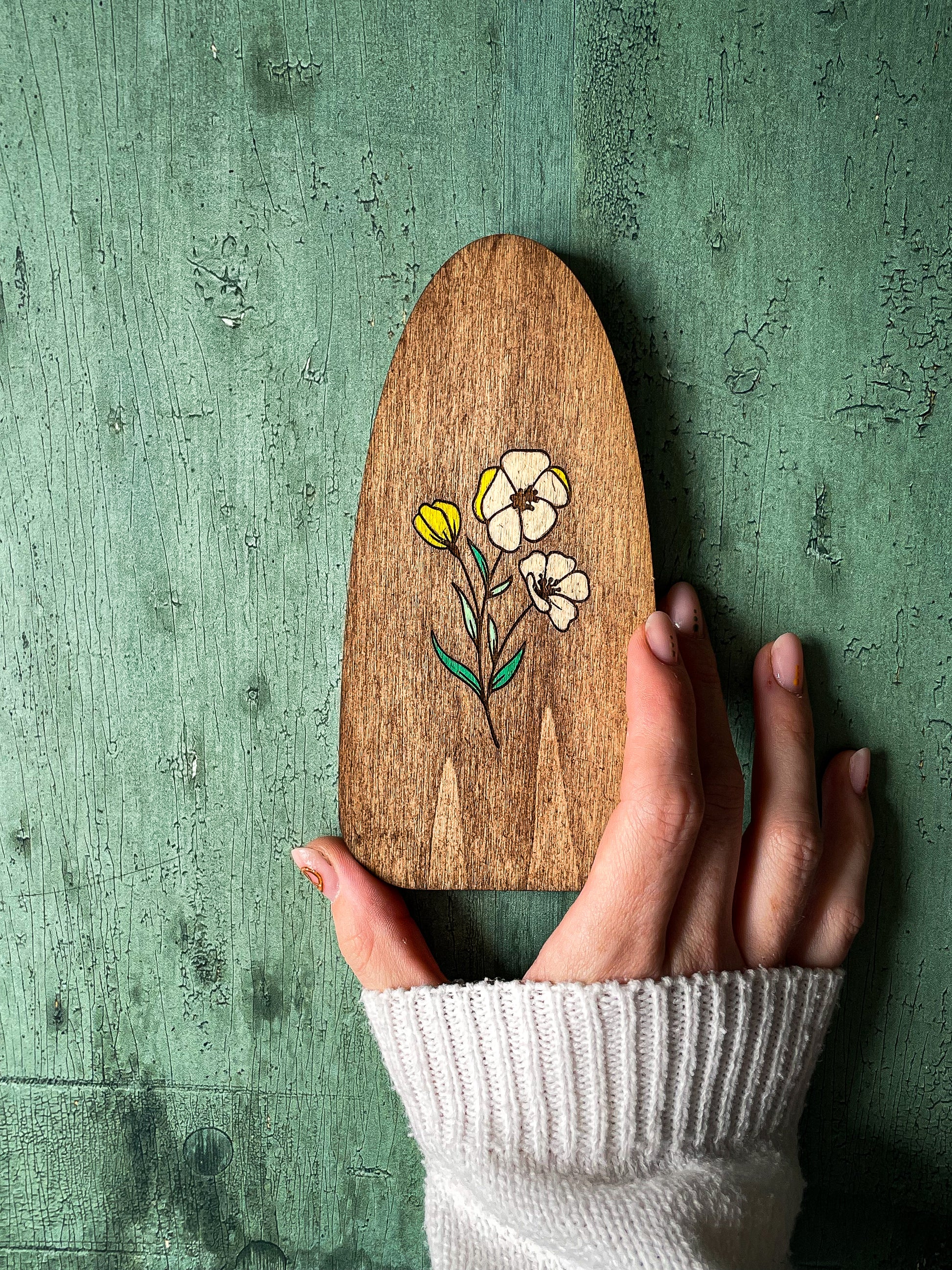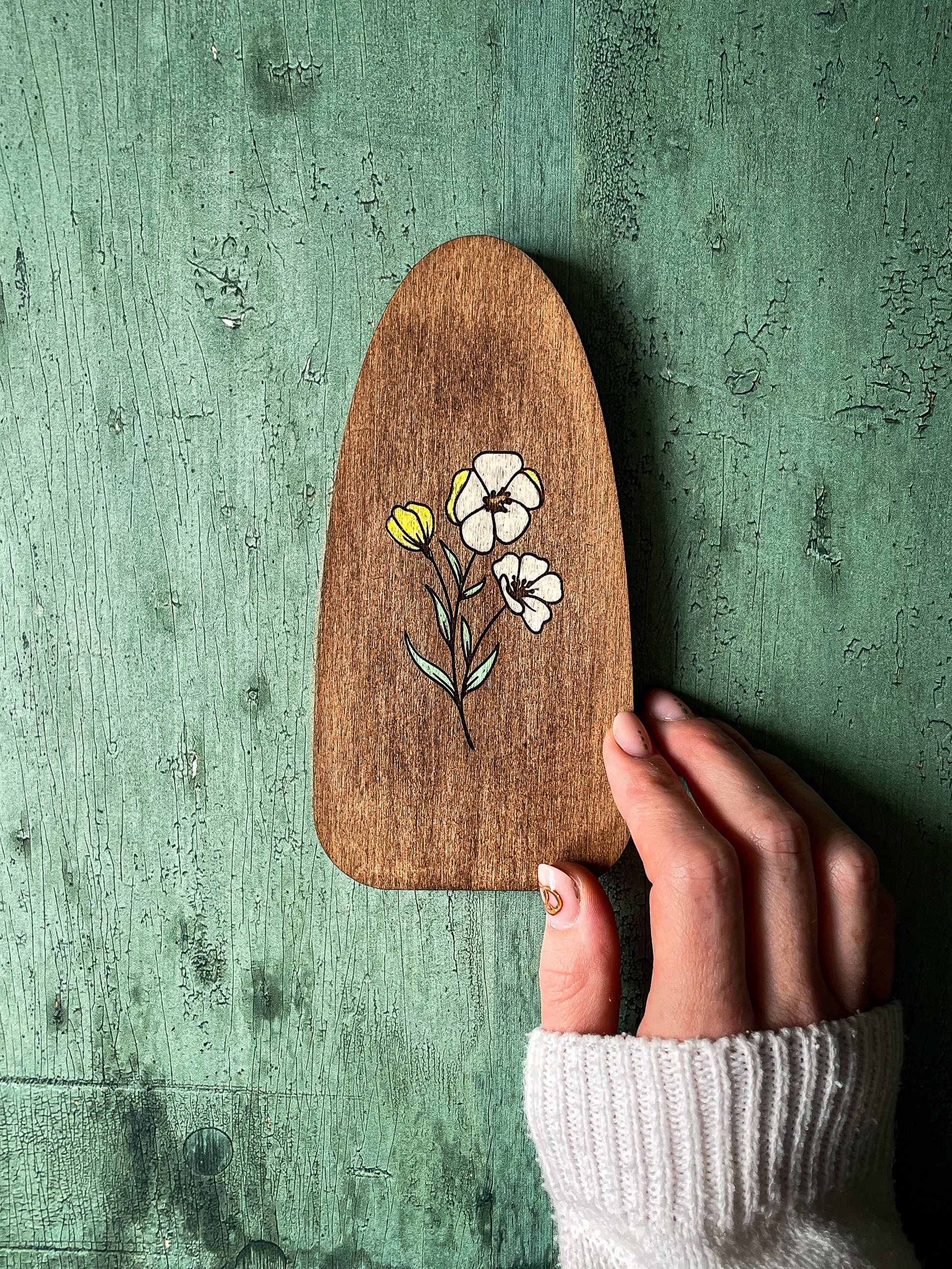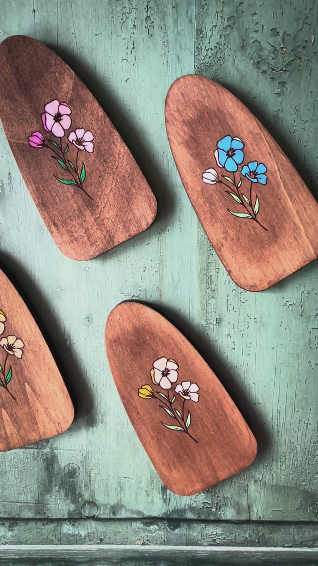Découpé et gravé au laser puis peint à la main, il est solide, léger et facile à transporter. Le couvercle est décoré d’un motif floral délicat, apportant une touche colorée et naturelle à votre matériel de couture.